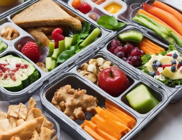 Bento style lunches designed for children's tastes and nutritional needs, ensuring satisfaction.